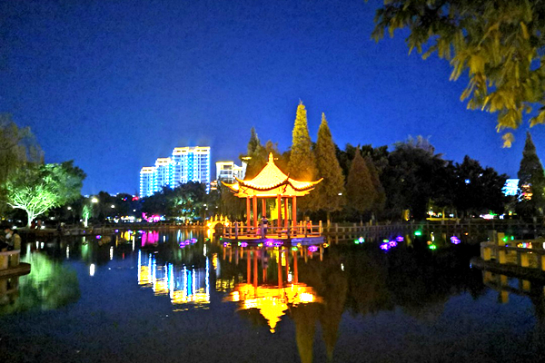 酒店不远处,有个龙翔广场,晚上五颜六色的灯光照耀的无比美丽,推荐去走走哟(有时晚上八点还会有喷泉)